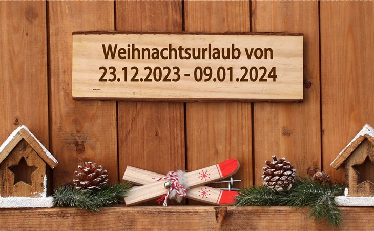 Wir haben von 23.12.2023 bis einschließlich 09.01.2024 geschlossen!